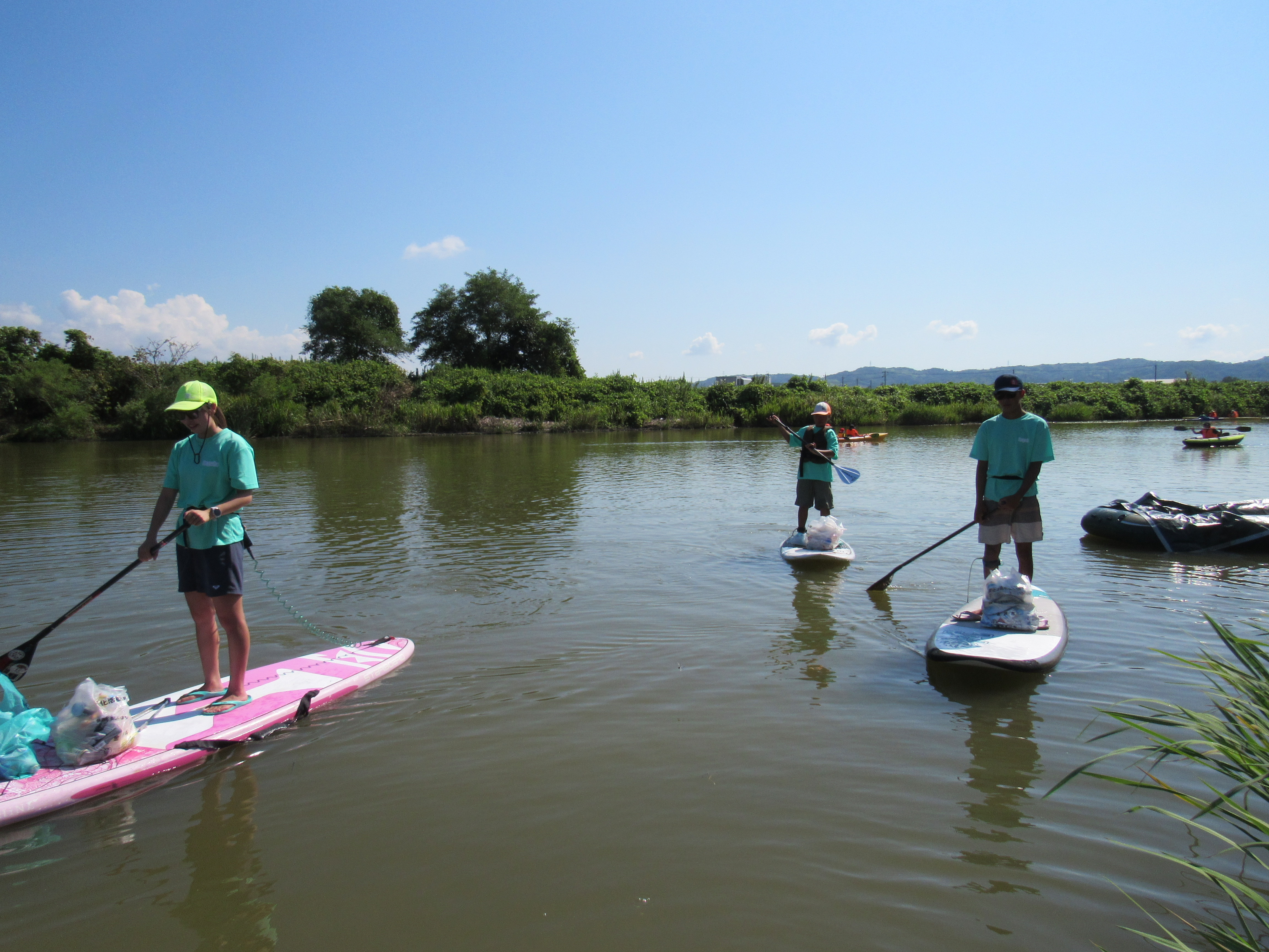 カヤック、イカダに乗って、河北潟の水上散歩がおこなわれました。
