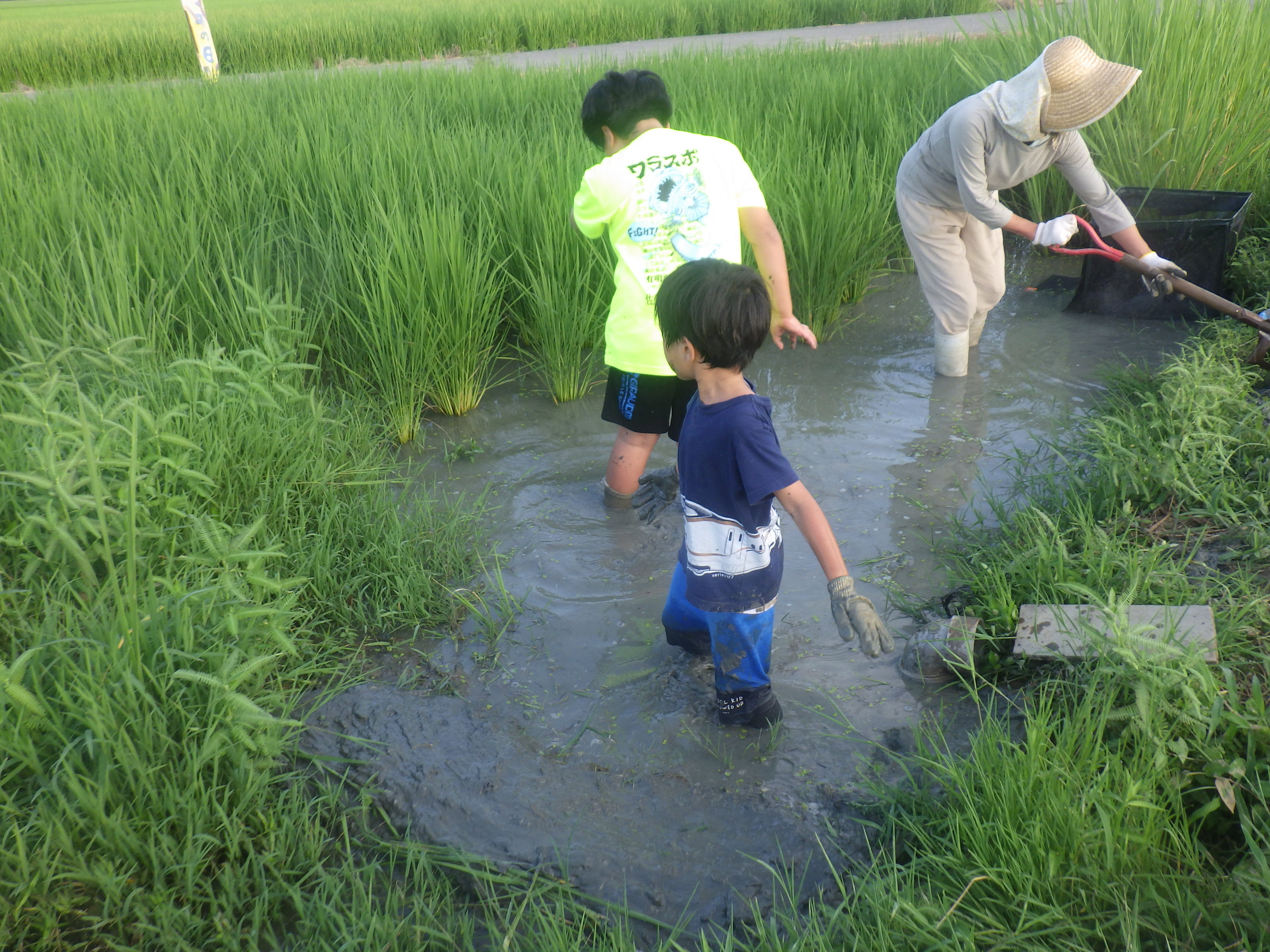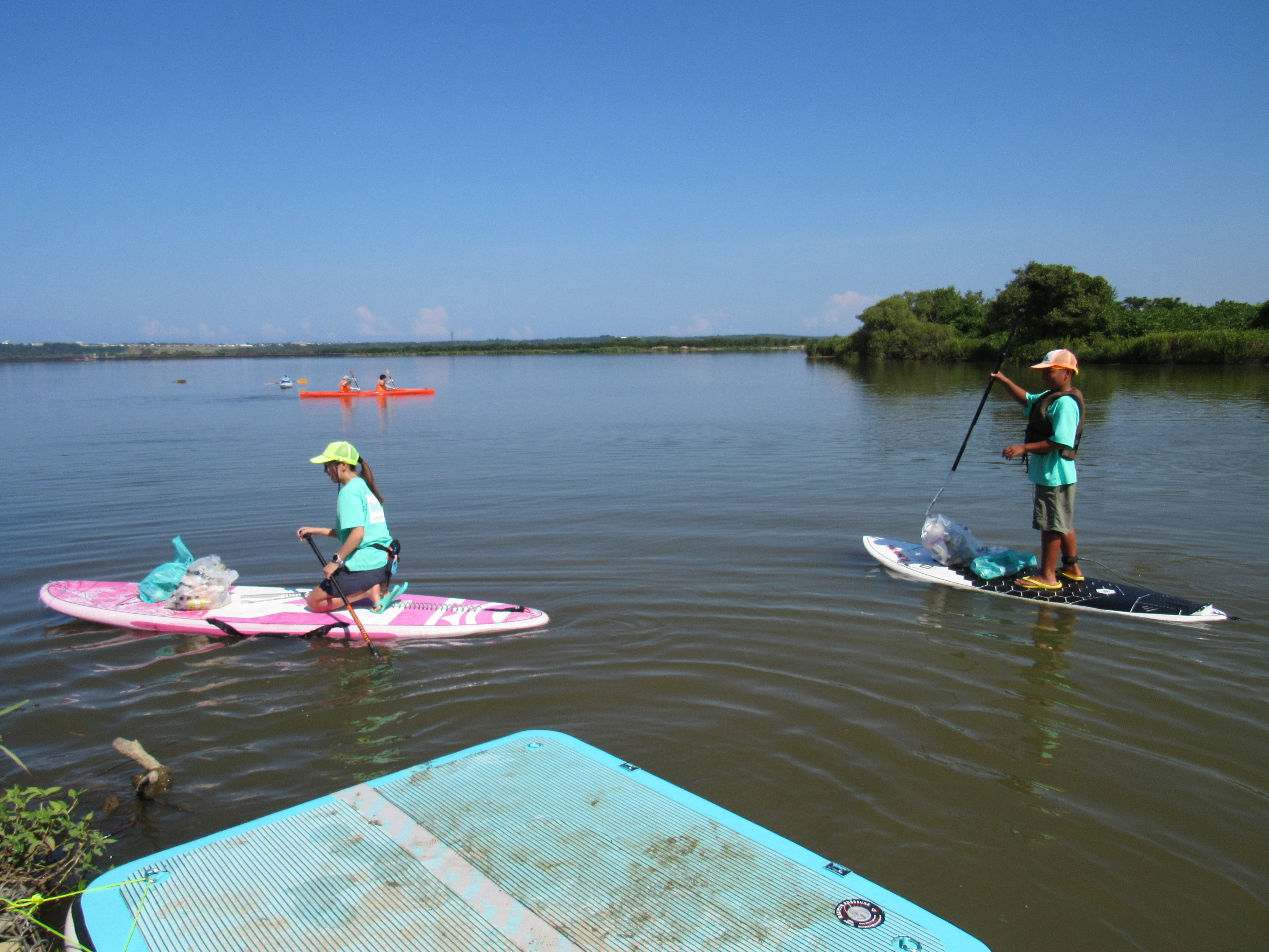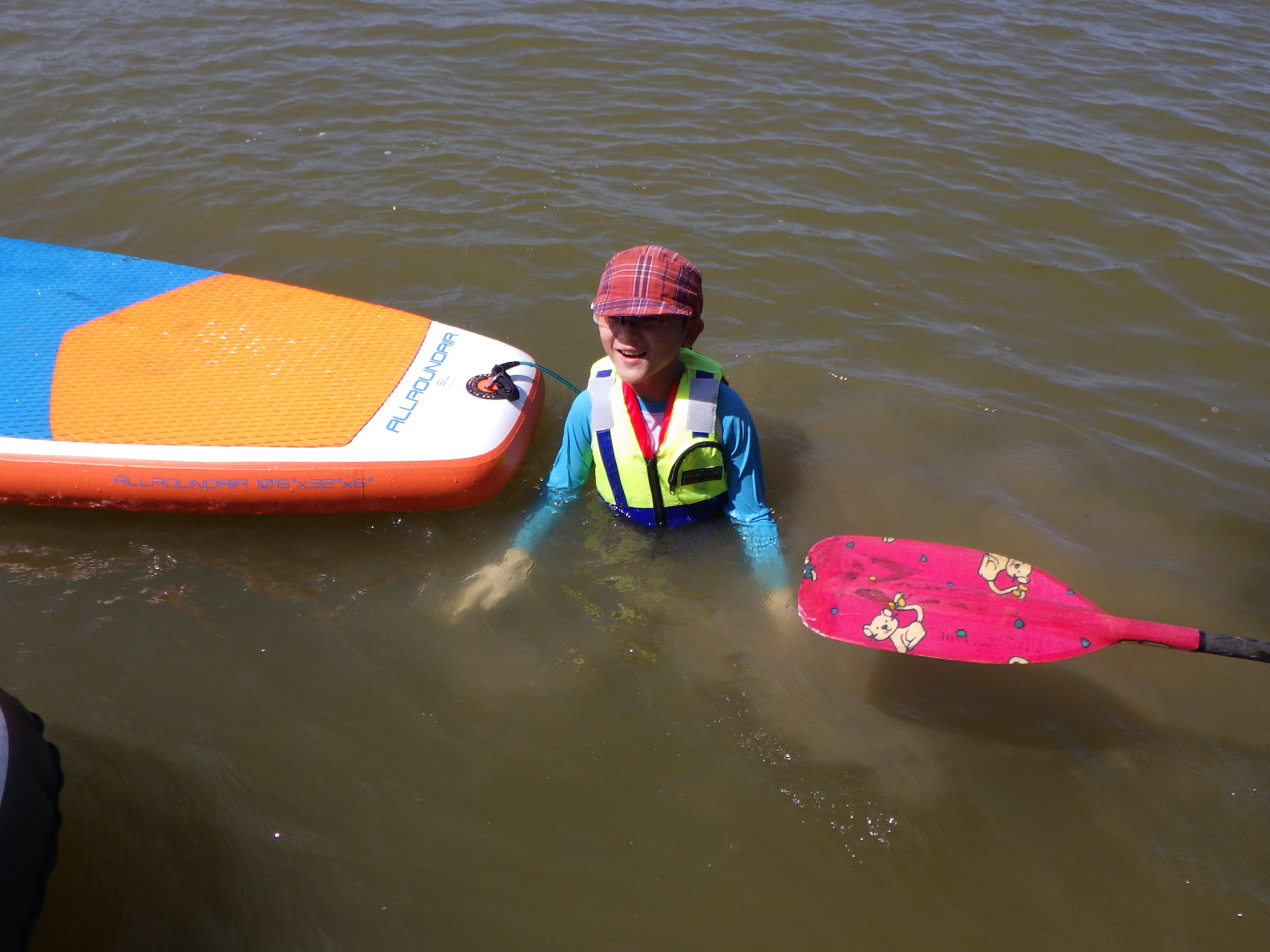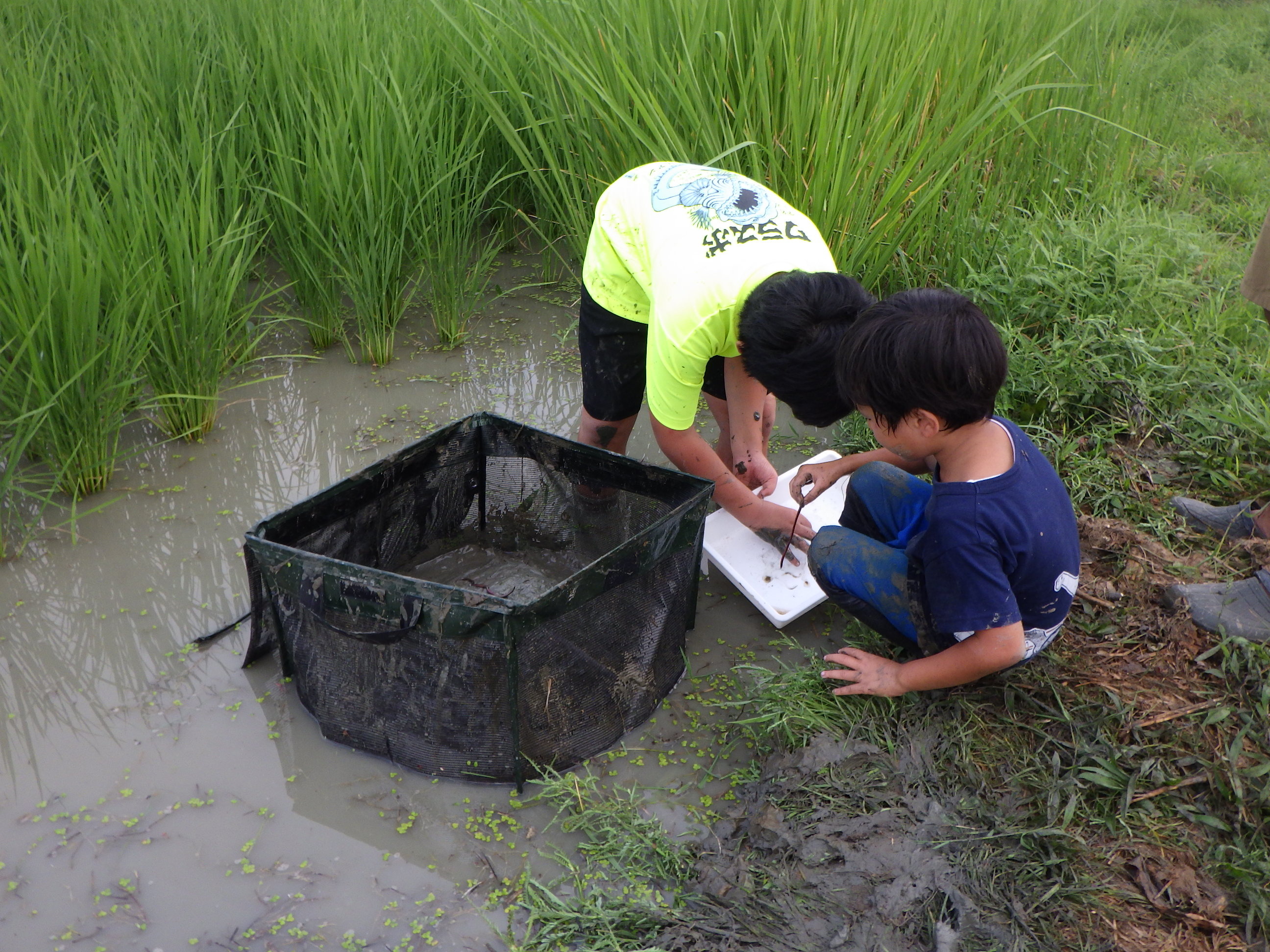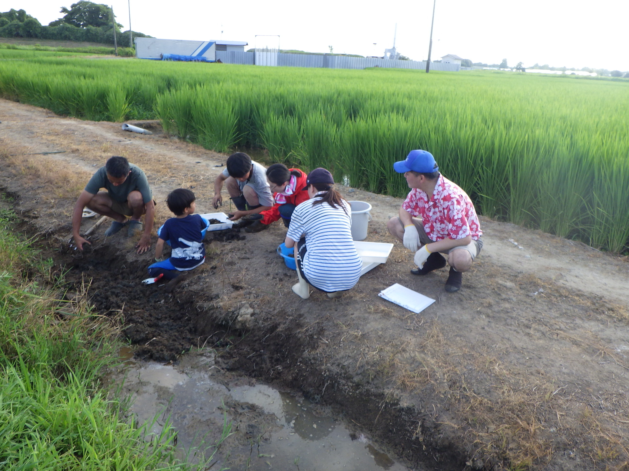 ここは河口に水門があり、流れが無く、ある意味安全になっています。でも小さな子供が川に落ちる危険もあることから救命着を着用いただき実施しました。