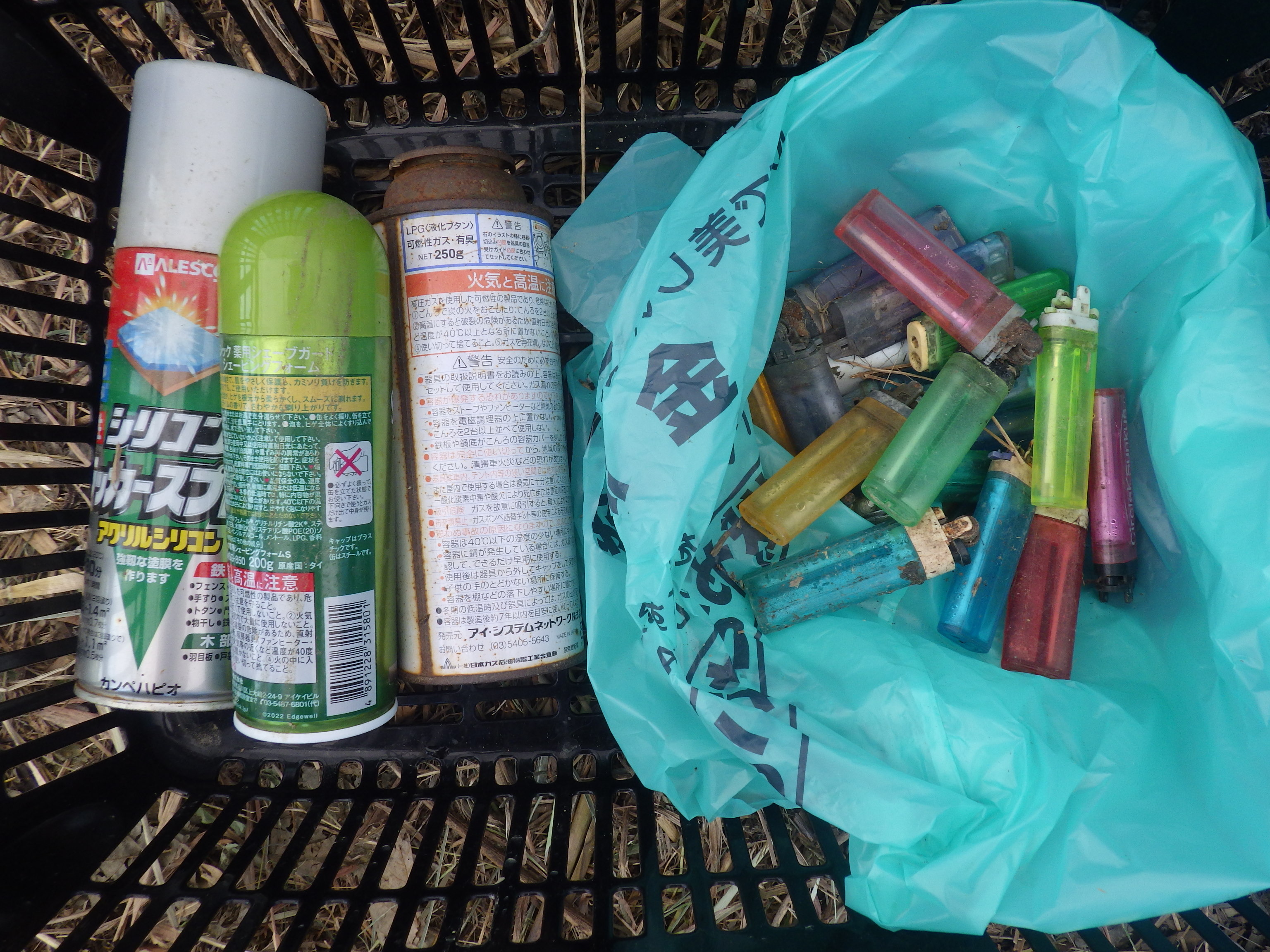 大宮川は公園横で川が大きくカーブするため、上流で捨てられ流されてきたごみが、公園横の川岸に多くたまります。ペットボトルやカップ麺らしきものの容器などが目立ちました。