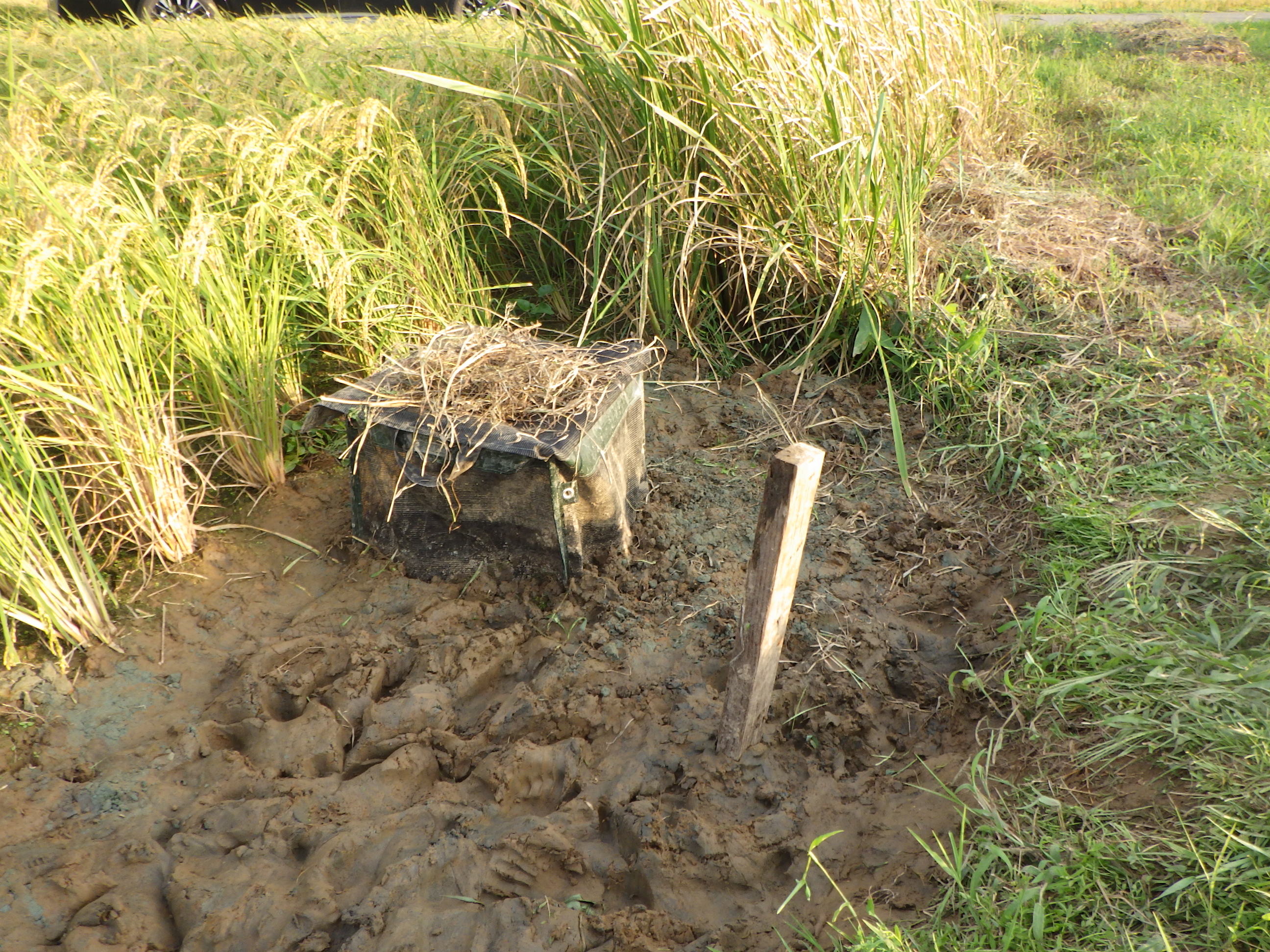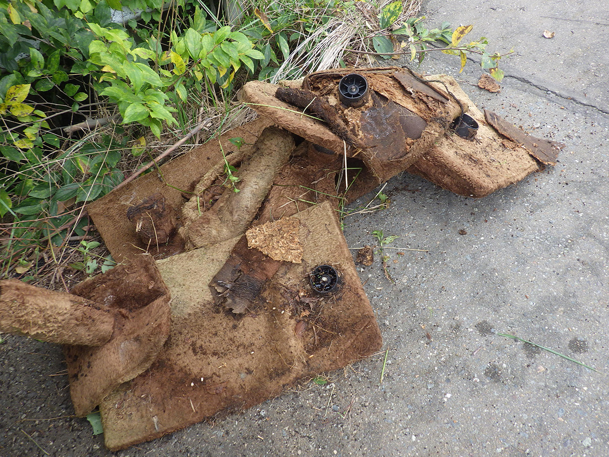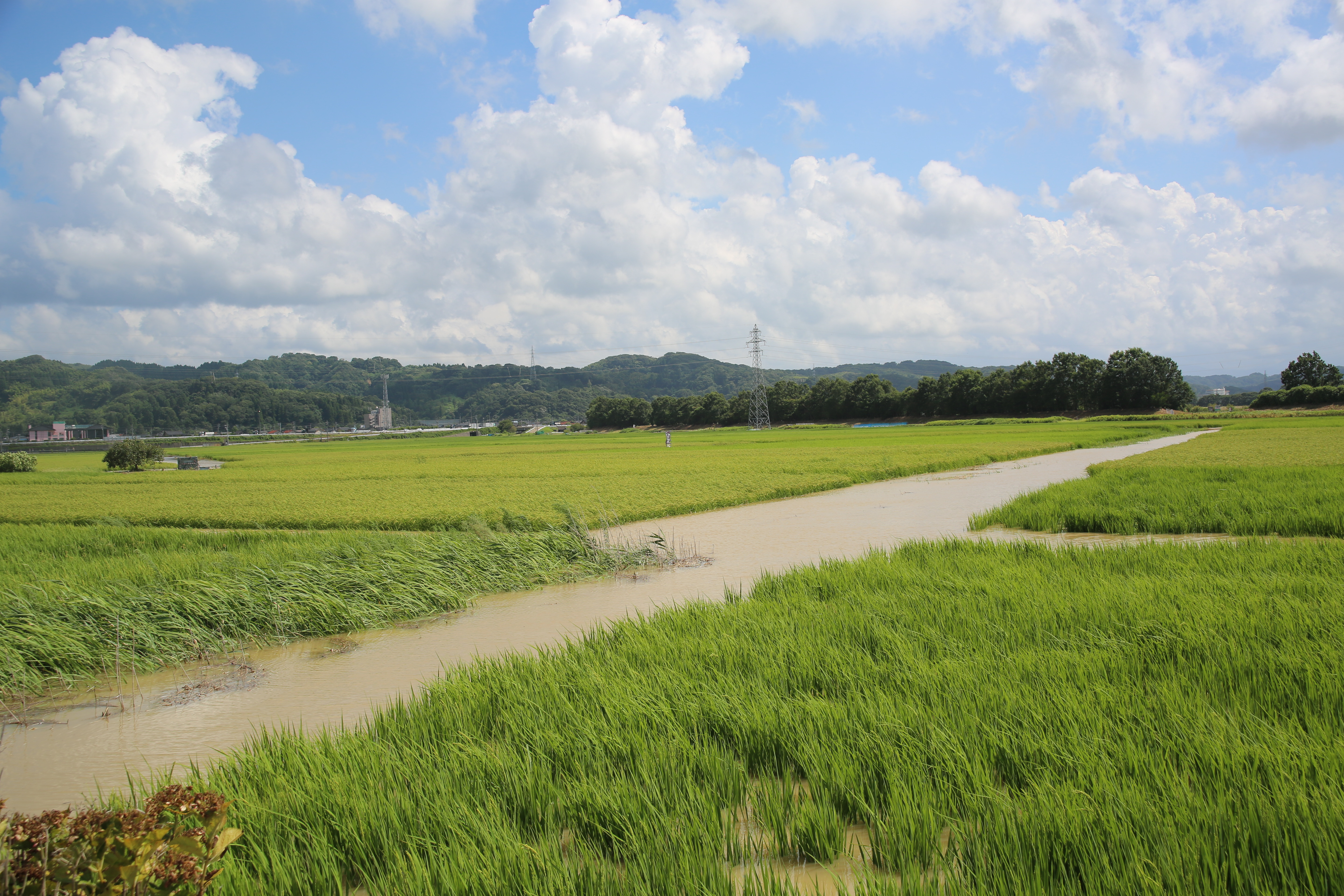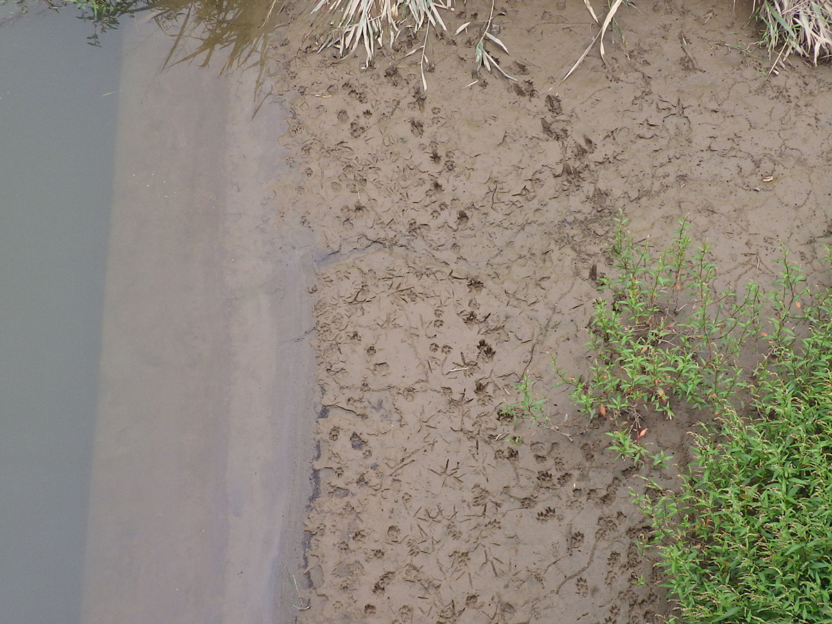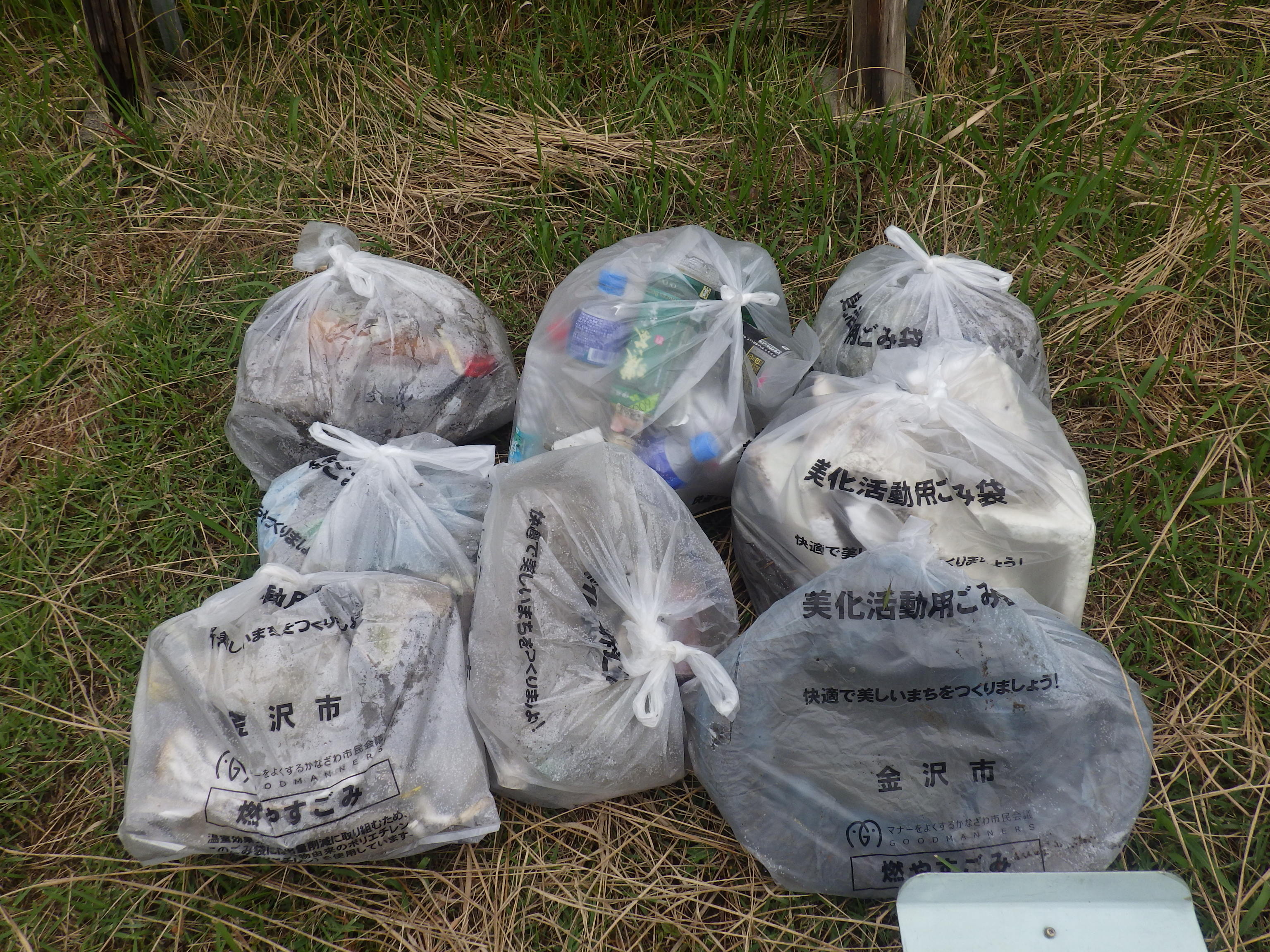 大宮川は公園横で川が大きくカーブするため、上流で捨てられ流されてきたごみが、公園横の川岸に多くたまります。ペットボトルやカップ麺らしきものの容器などが目立ちました。