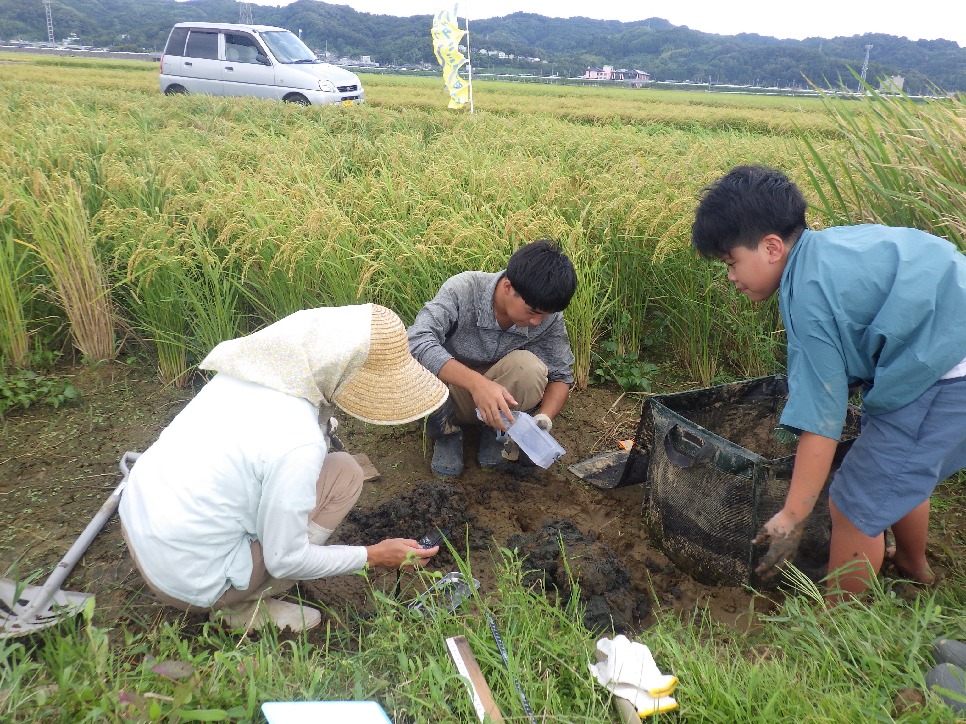 高さではな、「長さ」としているのは、抜き取ったセイタカアワダチソウの先端から先端までの長さを競うからです。ようするに根っこも対象となります。ですので、ただ背が高いセイタカアワダチソウを抜いたら勝ちとなるのではなく、丁寧に掘り続けると、根っこだけで何10cmも稼ぐことができるのです。