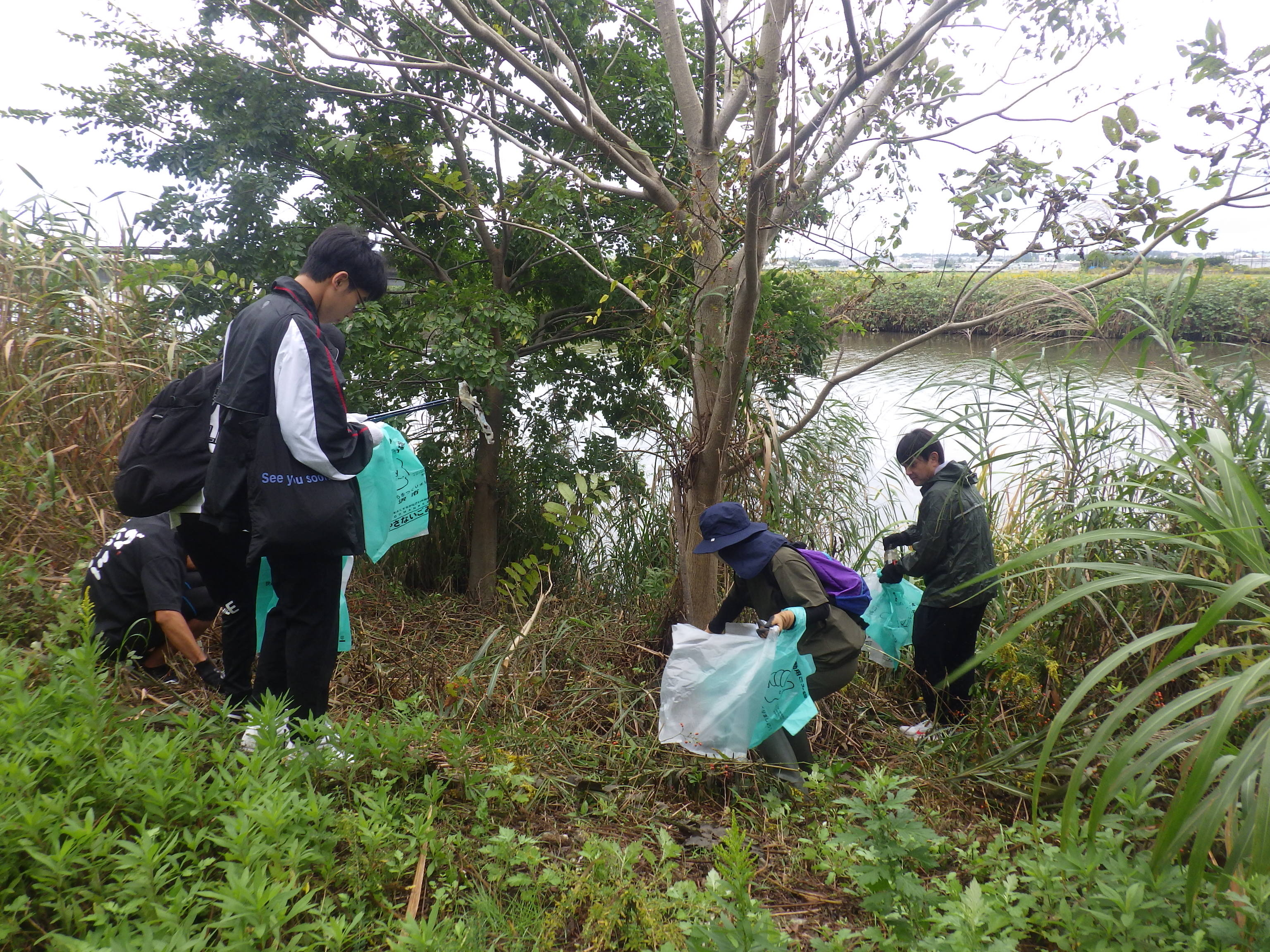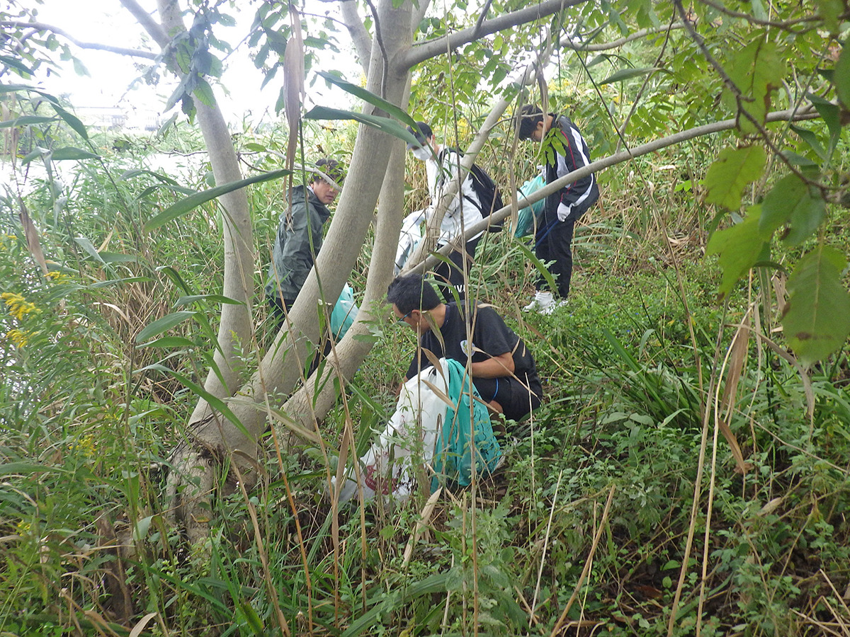 公園横を流れる大宮川の川岸にてごみ拾いがおこなわれました。