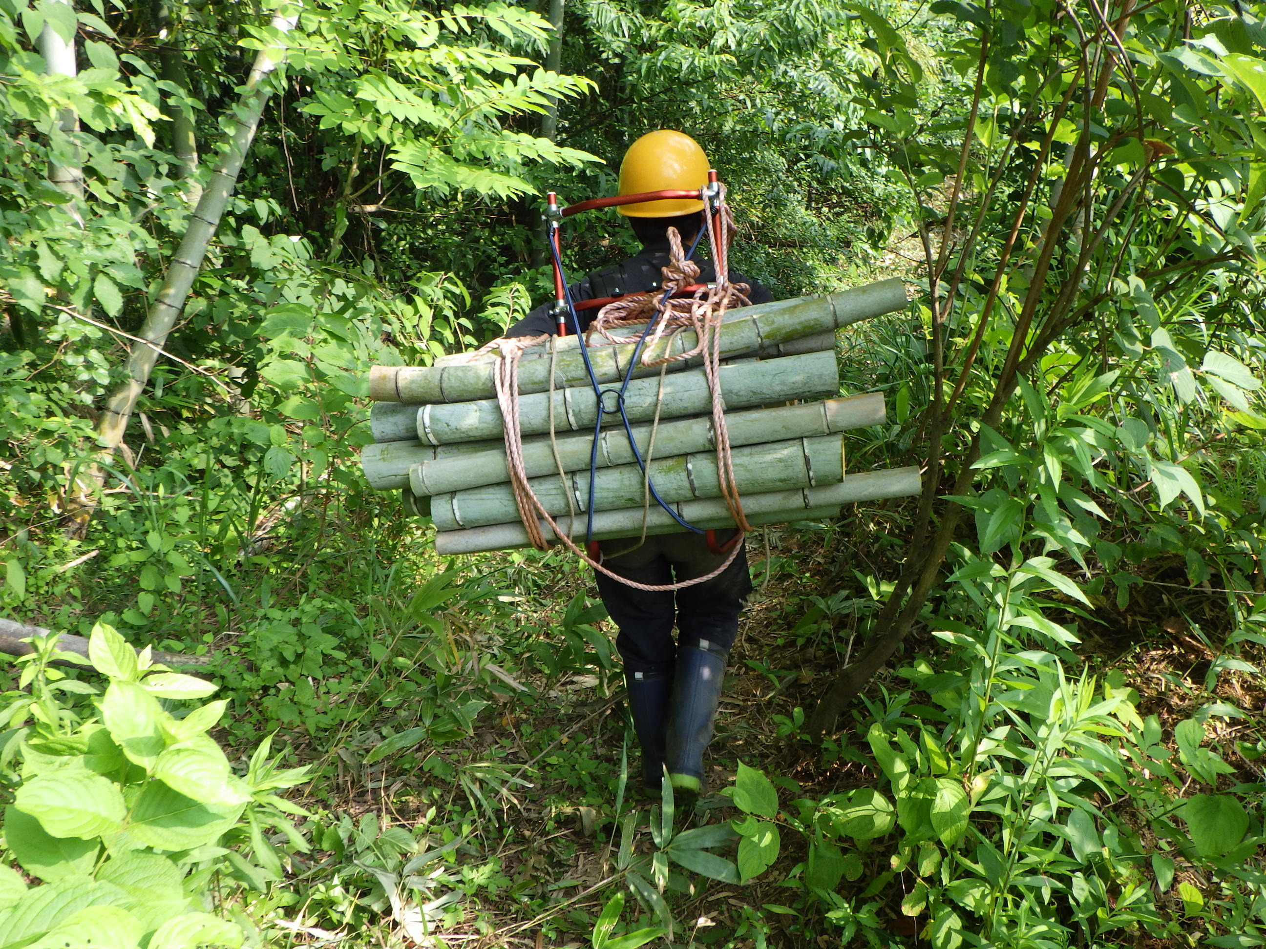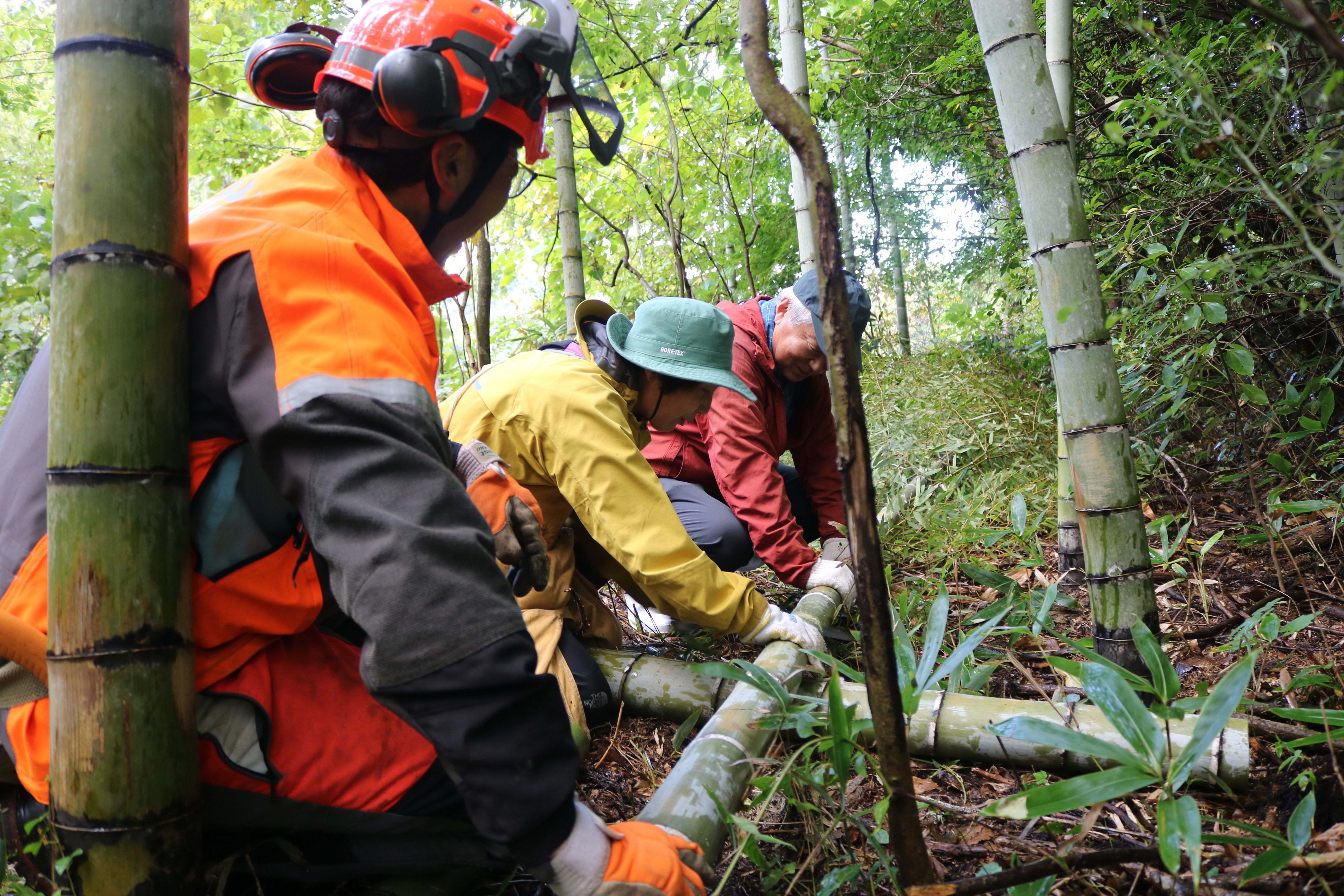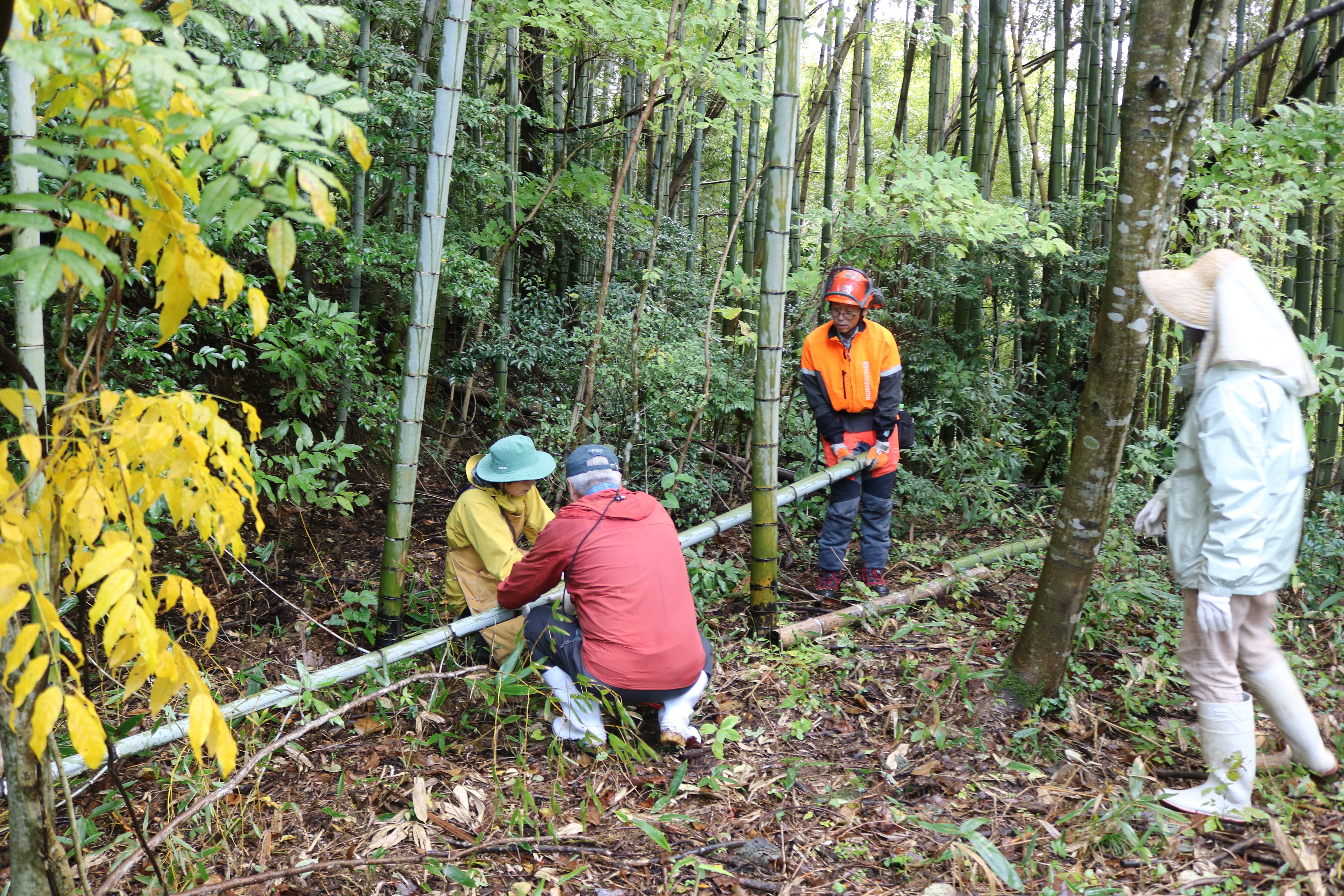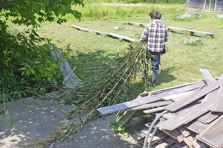 抜き取ったセイタカアワダチソウの長さを競う「セイタカアワダチソウ抜き取り大会」。
